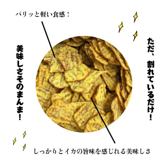 ・原材料:いか煎餅(小麦粉、いか粉、パン粉、あられ、植物油、魚肉シート)(国内製造)、植物油、小麦粉、でん粉、食塩、植物性たん白、香辛料、卵白、デキストリン/調味料(アミノ酸等)、膨張剤、炭酸Ca、乳化剤、甘味料(ステビア)、加工デン粉、ソルビトール、カゼインNa、着色料(カロチノイド、カラメル)、香料、(一部に小麦・卵・乳成分・いか・大豆を含む)