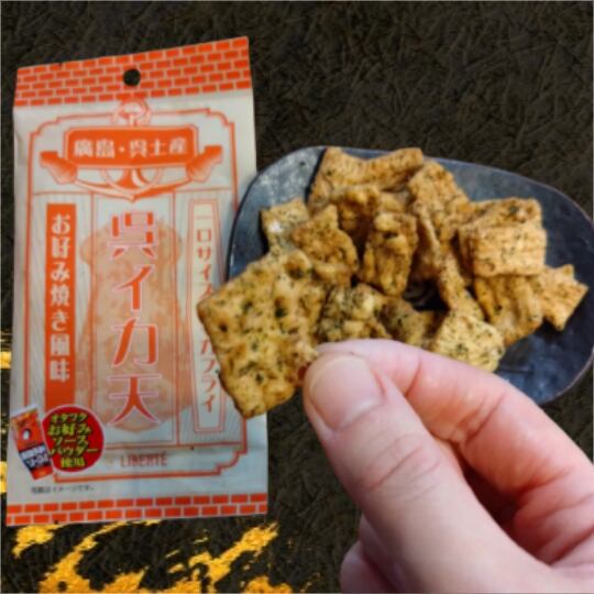 おつまみタイムにぜひどうぞ!お好み焼き風味イカ天は、飲み物と一緒に楽しむのにぴったりです。「呉イカ天お好み焼き風味」は、サクサク感が絶妙で、オタフクお好みソースパウダーを使用した香ばしい味わいが特徴です。特別な時間に、ぜひこの呉イカ天をお試しください。
