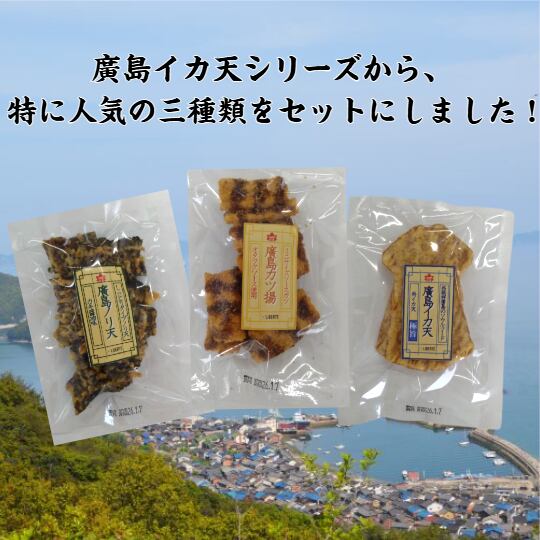 ♪瀬戸内海の恵みを感じられる、廣島イカ天シリーズの人気三種を一つの袋に詰め込みました!♪